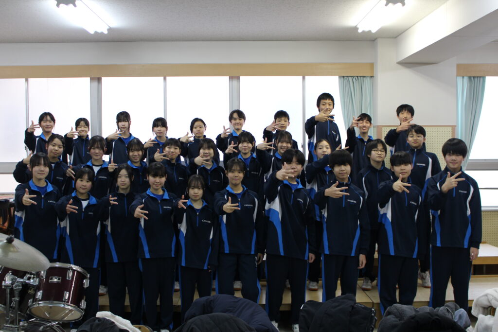 金石中学校吹奏楽部は1 年生18名、2年生13名の計31名で活動しています。私達の部の目標は「挑戦」です。この目標を達成するために、部員どうしで意見を出し合ってパート練習や合奏をしたり、コンクールや地域の依頼演奏に向けて毎日一生懸命練習に取り組んだりしています。本日は、J-POP に加えてサクソフォン四重奏も披露いたします。金石ブラスの明るいサウンドをどうぞお楽しみください!